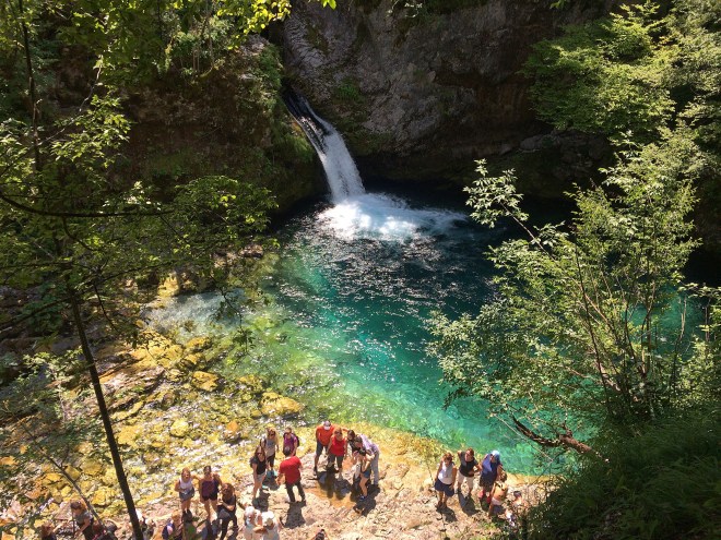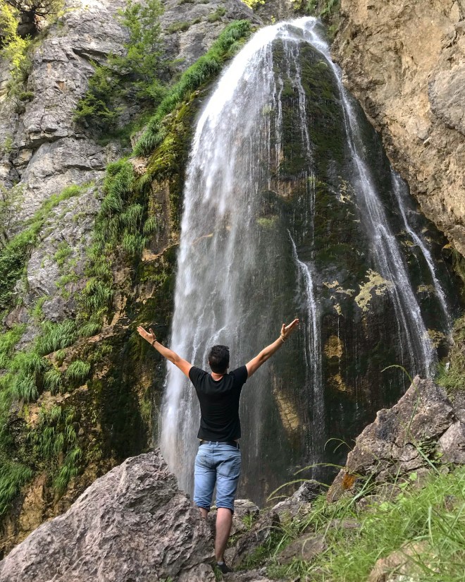 Me rreth 40 minuta ecje mes gjelbërimit pafund dhe nën zhurmën e rrjedhës së lumit mbërritëm te perla e Alpeve. Banorët e zonës e kishin sistemuar rrugën mirë dhe kishin vendosur me punime druri vende edhe për të pushuar, kjo që vizitorët ta shijonin sa më shumë atë ujëvarë të vogël të Lumit të Zi dhe syrin si pus që formonte fillë aty.