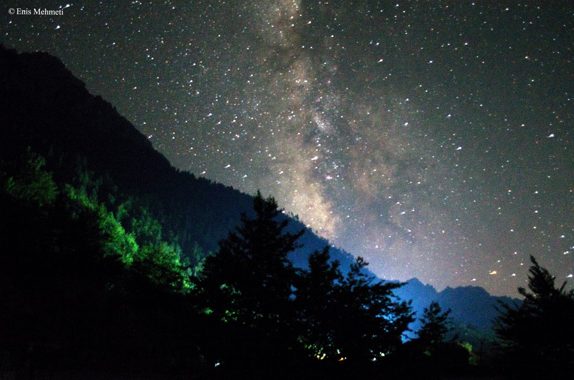 Dy javë pas hënës së përgjakur, një tjetër aventurë me kundrimin e qiellit natën më qëlloi ta përjetoja në Valbonë. Pas fenomenit të jashtëzakonshëm të eklipsit të kuq, i cili zgjati disa orë, aventura e radhës nuk kishte hënë, por një qiell plot e përplot me yje që binin. Ndezja e qiellit me yje është një tjetër mundësi përrallore që – krahas shtegtimeve dhe kulinarisë – mund ta shijosh në parkun kombëtar të Valbonës.